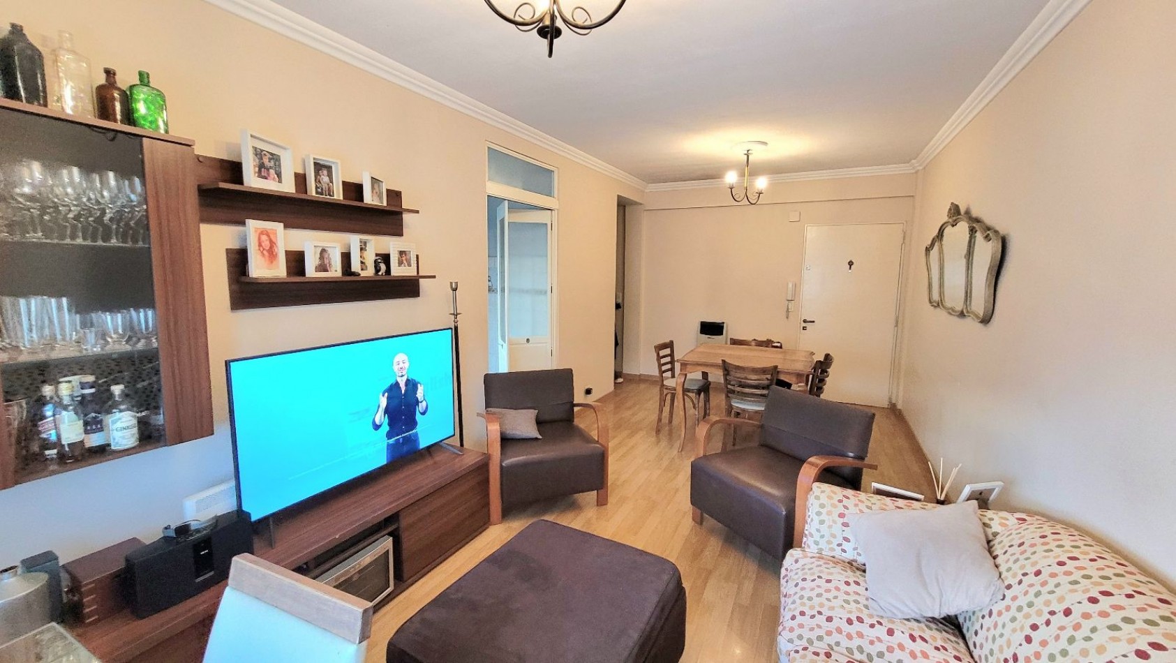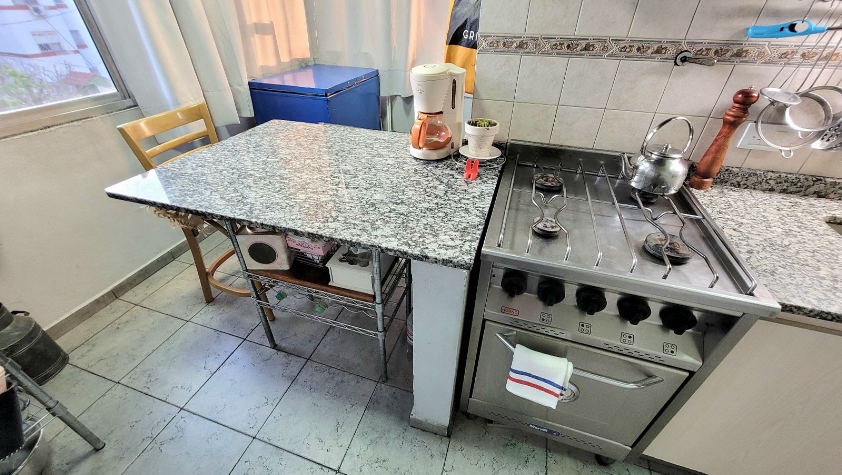 Living-comedor muy luminoso. Cocina independiente, equipada con bajo mesada, alacenas y barra desayunadora.