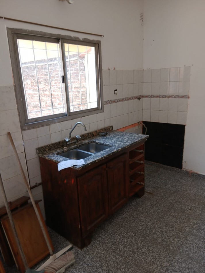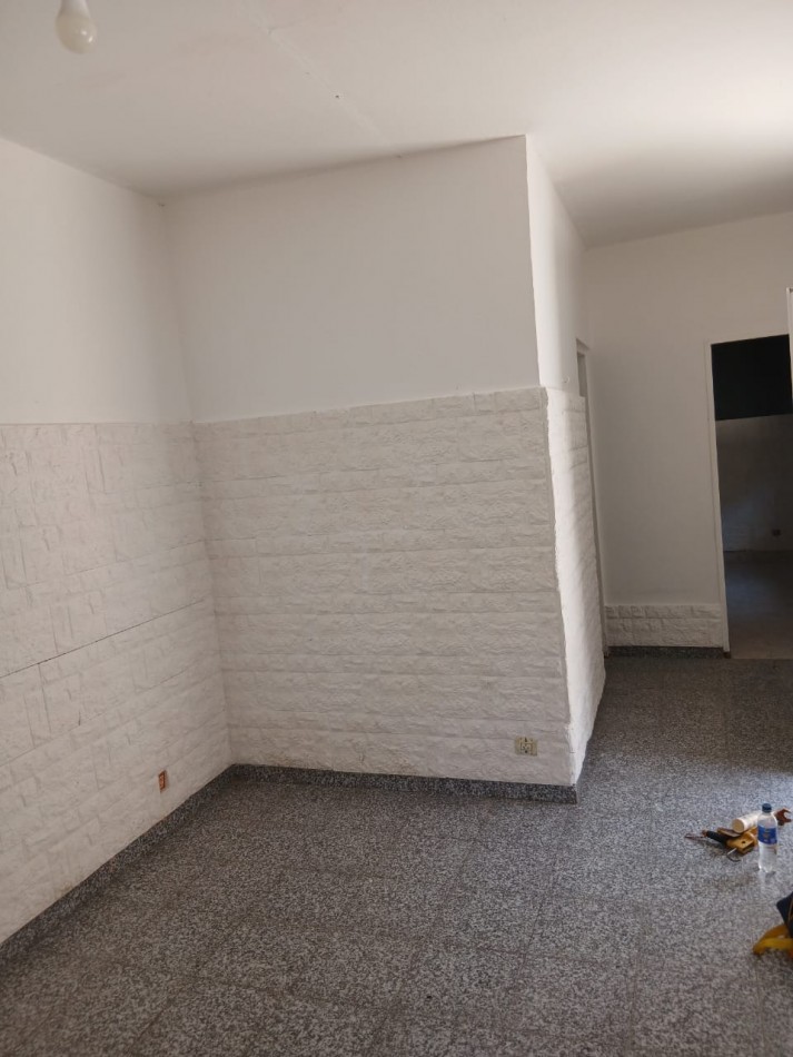 Departamento al fondo, entrada por pasillo, un dormitorio, cocina-comedor, baño y patio.