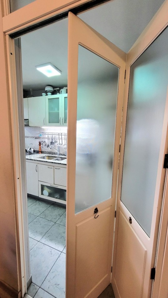 Living-comedor muy luminoso. Cocina independiente, equipada con bajo mesada, alacenas y barra desayunadora.