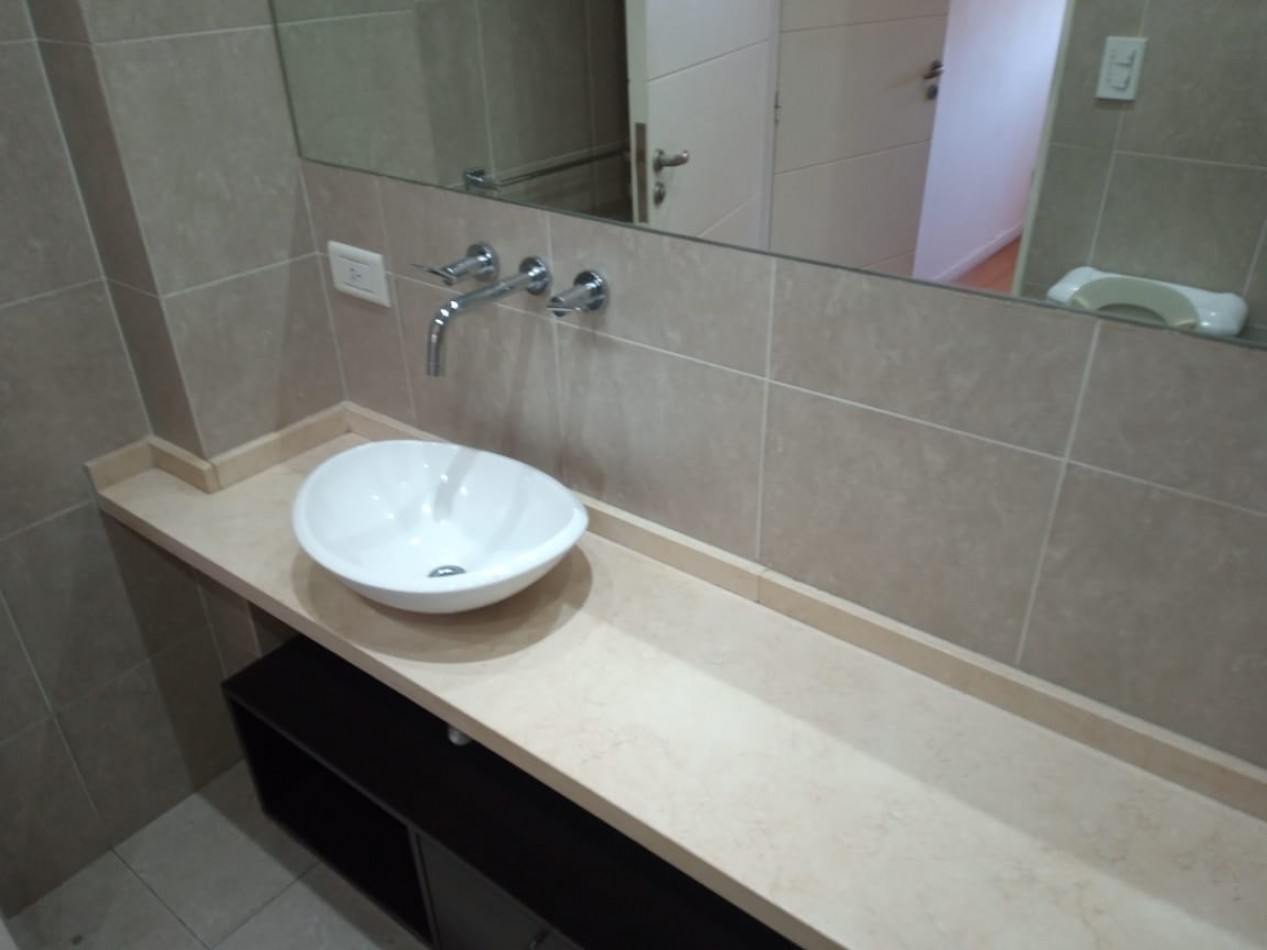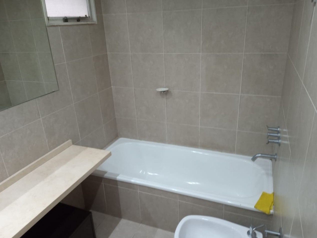 Departamento con un dormitorio, con baño en suite completo, living-comedor, baño con inodoro, pileta y bañera, dos aires acondicionados, lavadero, balcón, cochera descubierta con portón levadizo automático.