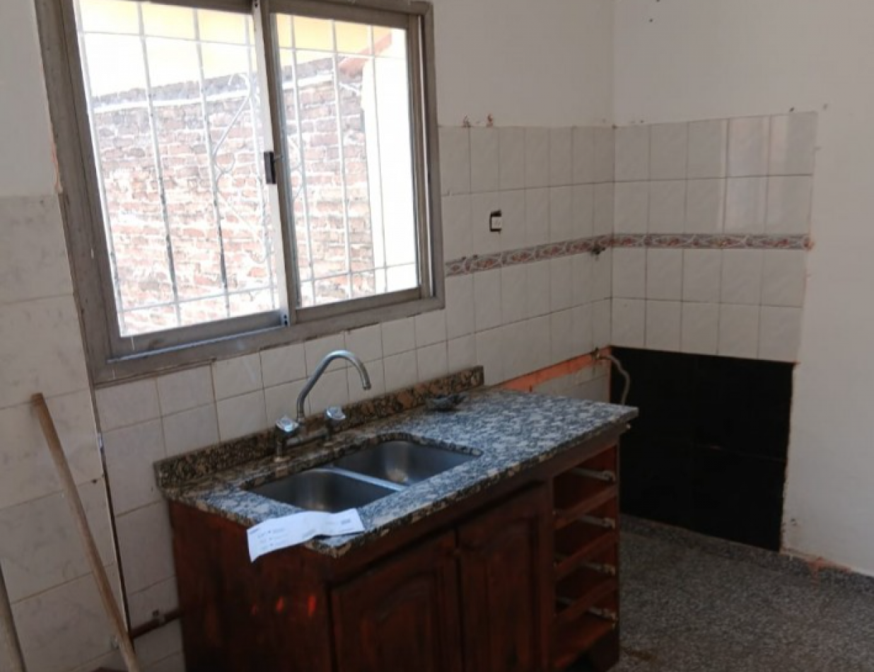 Departamento al fondo, entrada por pasillo, un dormitorio, cocina-comedor, baño y patio.